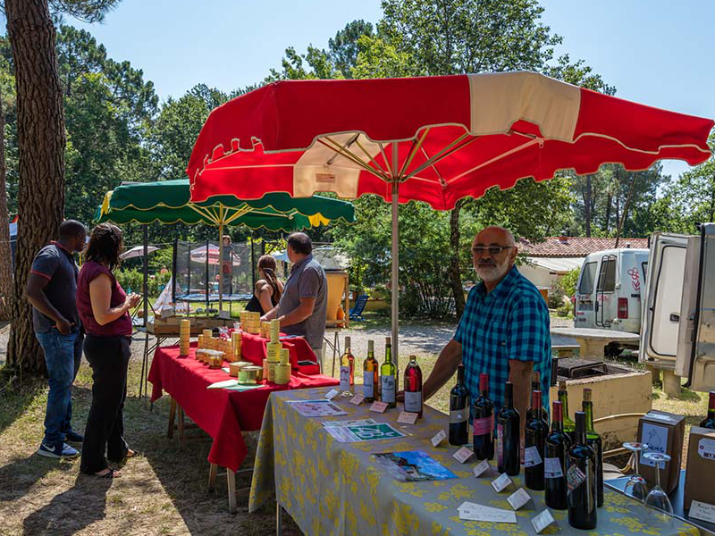 N’oublions pas notre fameux marché de produits régionaux (miel, vins, fruits et légumes, produits issus du canard, fromages de chèvre, tisanes artisanales) qui s’installe tous les lundis matins en haute saison en face du restaurant !