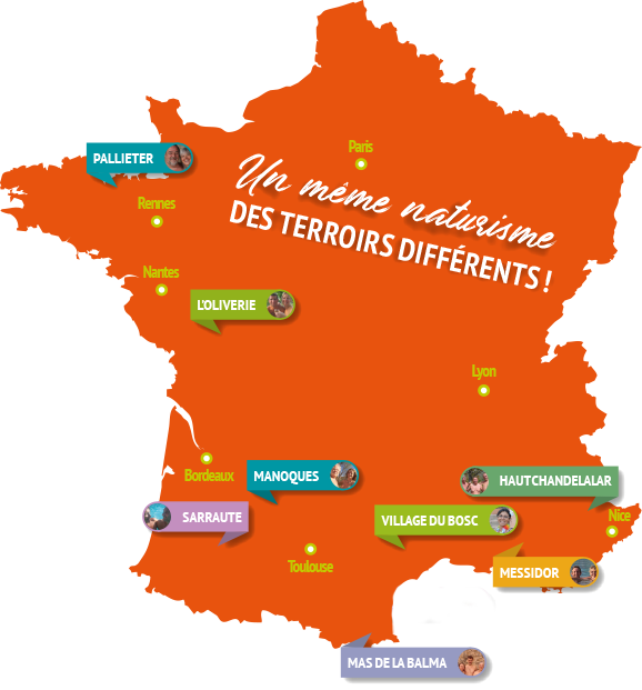 “Naturisme & Terroirs” is een groep naturistencentra, opgericht en beheerd door naturistenfamilies die u ontvangen op hun land met een oprecht verlangen om hun filosofie van naturisme en de terroirs van elk te delen...